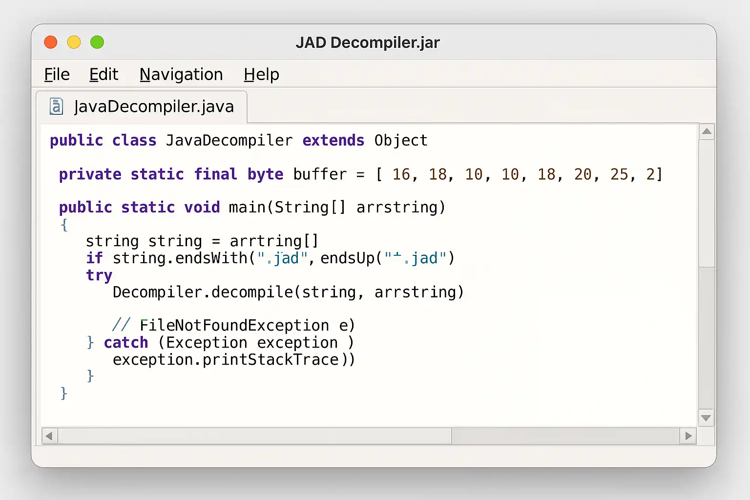 | 字节码还原 | 将.class文件还原为接近原始结构的.java源码 |