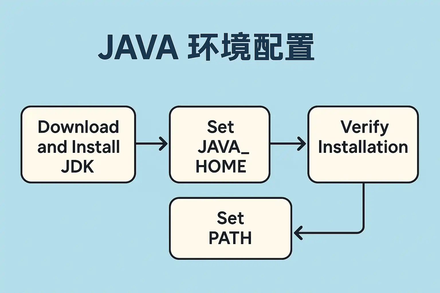 | Windows | 通过“系统属性”->“高级”->“环境变量”设置PATH和JAVA_HOME | 路径分隔符为分号;需重启生效 |