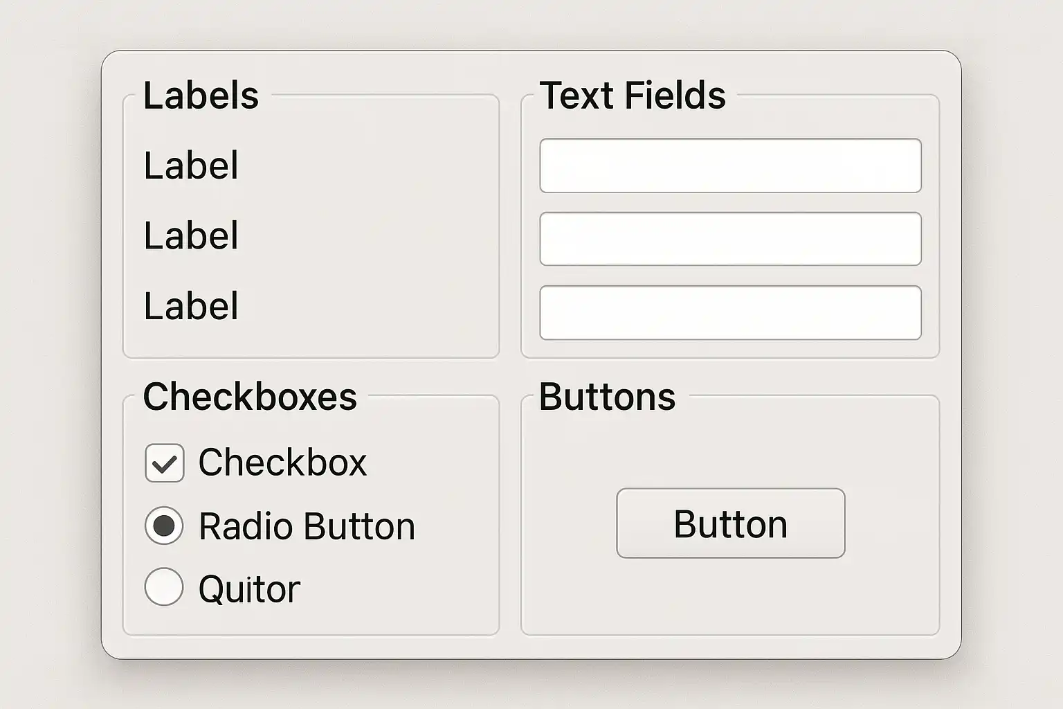 每个Panel都可以单独设置布局管理器,使不同区域采用最合适的排列方式,例如: