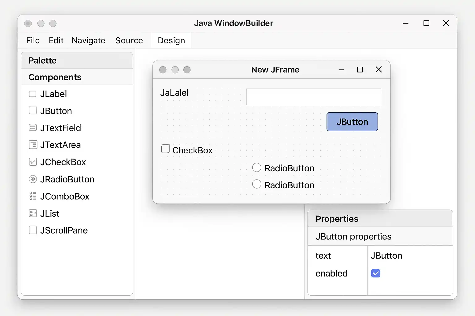 fieldName(如usernameField而非jTextField1)。这直接关系到Java代码的可读性。 -